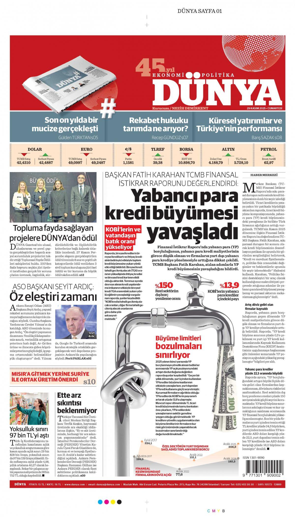 Dünya Gazetesi 30 Kasım 2025 Günü Gazete Manşetleri